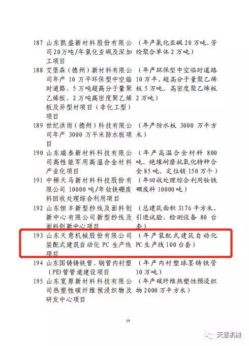 2020年2月 12日,天意機械的裝配式建筑自動化PC生產(chǎn)線項目入選2020年省新舊動能轉(zhuǎn)換重大項目庫第一批優(yōu)選項目。對于優(yōu)選項目省內(nèi)各級政府將會進一步加大政策協(xié)調(diào)支持力度,全面落實土地、能耗、用水、環(huán)境容量、資金等“要素跟著項目走”機制,全面建立項目評審綠色通道,簡化審查審批環(huán)節(jié),在依法合規(guī)前提下加快項目手續(xù)辦理進度。天意機械的裝配式建筑自動化PC生產(chǎn)線項目入選省優(yōu)選項目,既體現(xiàn)了省政府對該項目的重視,也體現(xiàn)出該項目具有新舊動能轉(zhuǎn)換的先進性。
